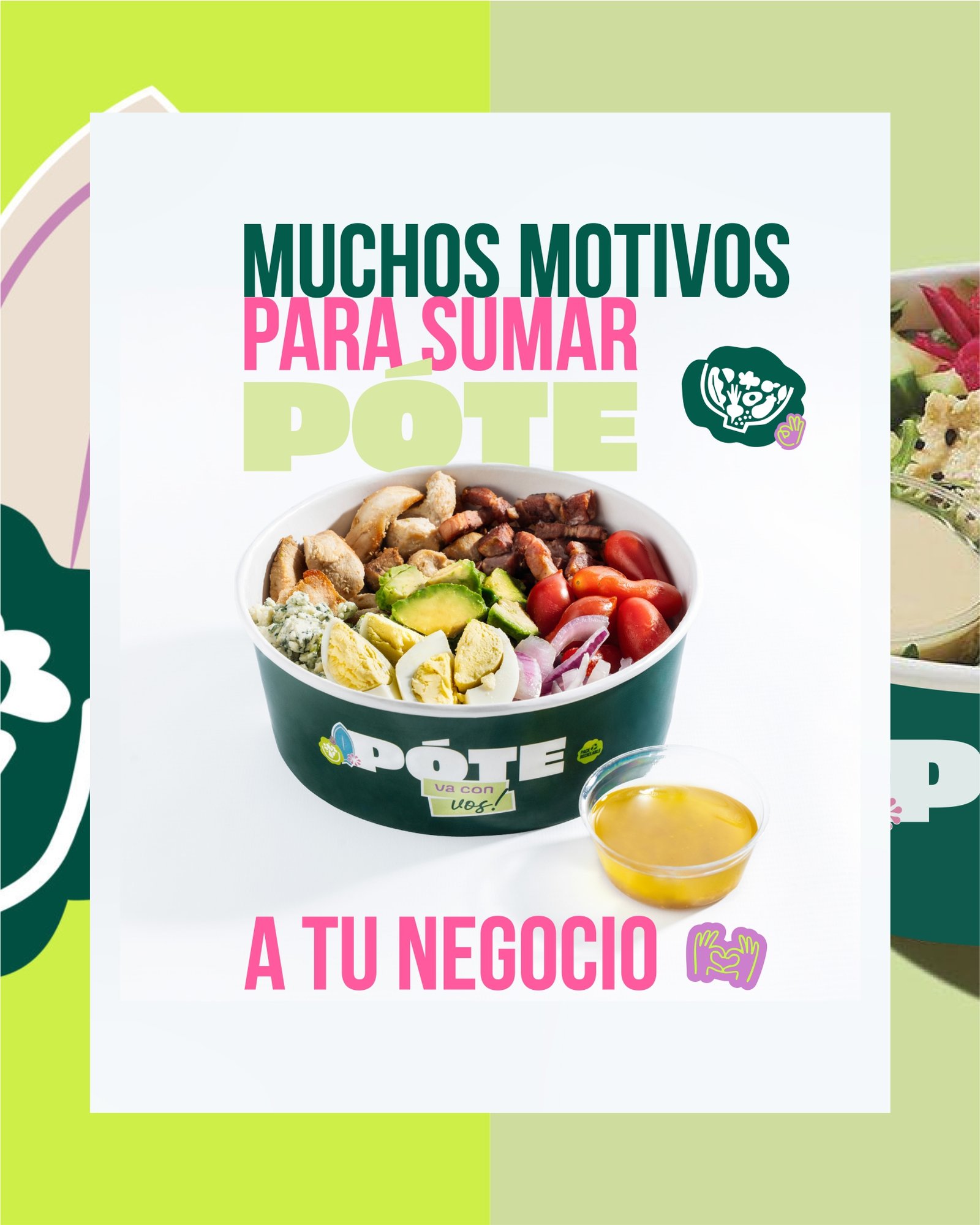 Creamos PÓTE un nombre cool y memorable para ensaladas y tartas que son mucho mas que eso. Con una identidad acorde a lo que queríamos transmitir, que PÓTE VA CON VOS, porque la llevas a todos lados y porque “habla” de vos.